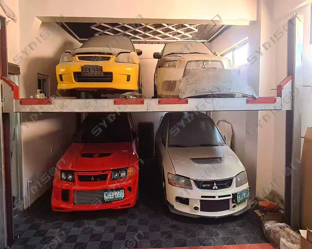 The four post hydraulic parking lift is a reliable and efficient solution for increasing parking capacity in limited spaces. It features a strong four-column structure and a hydraulic lifting system that allows two vehicles to be parked on the upper and lower levels on each side — accommodating up to four cars in total. It is widely used in residential buildings, commercial parking areas, car dealerships, and workshops.
