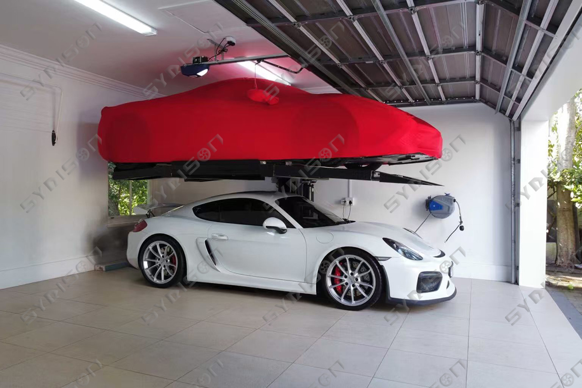 It uses a powerful hydraulic cylinder to lift one vehicle above another, effectively doubling parking capacity with a minimal footprint.