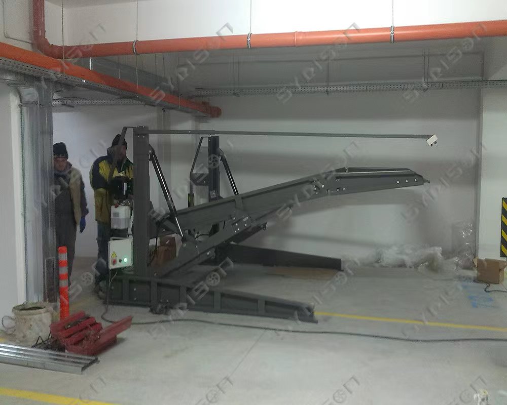 The two-post tilting hydraulic car parking lift is a compact and efficient solution designed for residential garages, apartment buildings, and small commercial parking areas. The platform is raised and tilted by a reliable hydraulic cylinder, allowing another vehicle to be parked underneath. It effectively doubles parking capacity while maintaining a simple structure, smooth operation, and low maintenance cost. Built with heavy-duty steel and durable powder coating, it ensures long-term performance and easy installation in limited spaces.
